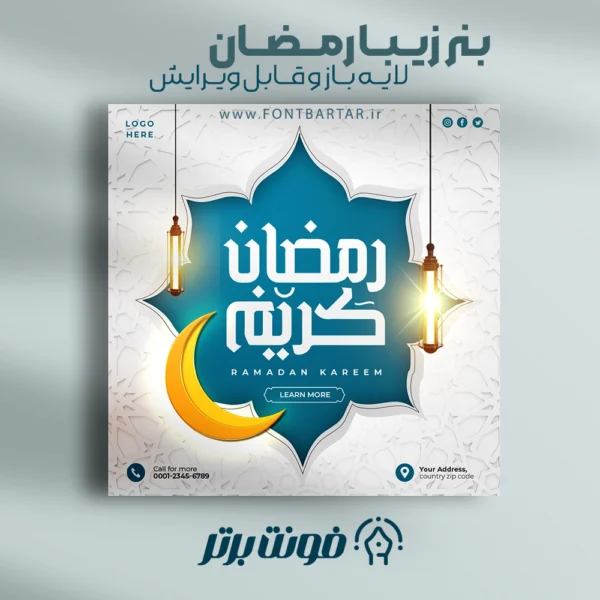 دانلود بنر لایه باز رمضان – بنر حلول ماه رمضان برای استقبال از رمضان و تبریک ماه میهمانی خدا طراحی و چاپ می‌شود. بنر حلول ماه مبارک رمضان قبل از شروع رمضان چاپ و در سطح شهر نصب می‌شود یا به صورت پوستر حلول ماه رمضان در ابعاد کوچک به دیوار چسبانده می‌شود. بنر تبریک حلول ماه رمضان می‌تونه محتوای جذاب و خاصی داشته باشه. مثلاً می‌تونید از تصاویر مرتبط با ماه مبارک رمضان، الهام گرفته از هنر اسلامی یا عناصر فرهنگی مرتبط، در کنار پیام‌های مذهبی یا متن‌های خاص بهره ببرد. ممکنه از رنگهای مطابق با این ماه مثل آبی، طلایی و سبز هم استفاده شود تا حس ماه رمضان رو به خوبی منتقل کند. طرح دات آی آر طرح بنر تبریک ماه رمضان را که دارای طرح گرافیکی حرفه‌ای است و منحصر به فرد است را در اختیار شما قرار می‌دهد. همچنین، اگر موارد خاصی را هم دوست دارید در بنر حلول ماه رمضان نشان دهید می‌توانید به طرح اضافه کنید.