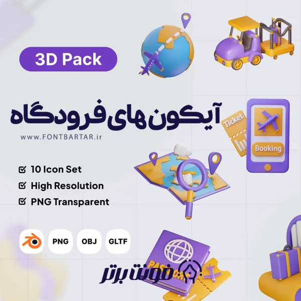 دانلود پکیج آیکون های سه بعدی فرودگاه (Airport 3D Icon Pack)